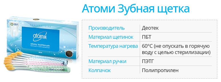 Зубная щётка Атоми. Вкладка с описанием от производителя.