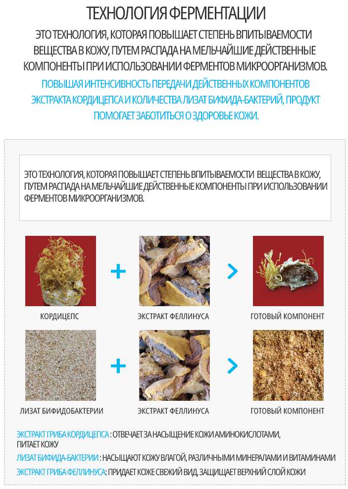 - Гриб Кордицепс - отвечает за насыщение кожи аминокислотами и питает кожу.
